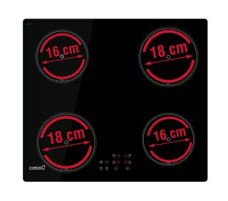 4 Indukciós főzőzóna, MACH2 indukciós technológia, Touch Control érintővezérlés, 9 fokozat, 2 db 18cm-es, 2 db 16 cm-es főzőzóna, minden főzőzóna BOOSTER funkcióval, gyerekzár, időzítő, maradékhő kijelzés, Quick-Fix system, teljesítmény: 7 kW