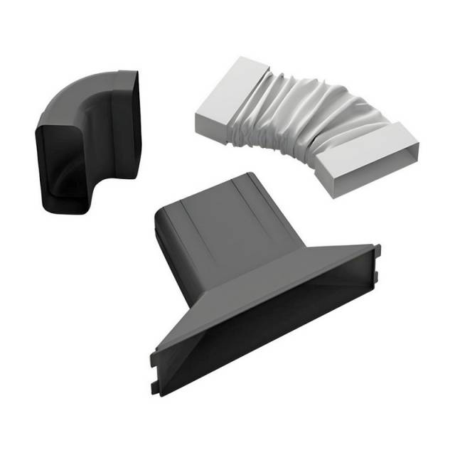 - 1 db Téglalap alakú 90°-os ív (94 x 227 mm): Segíti a légáramlás elvezetését szűk helyeken, miközben megőrzi a hatékonyságot.